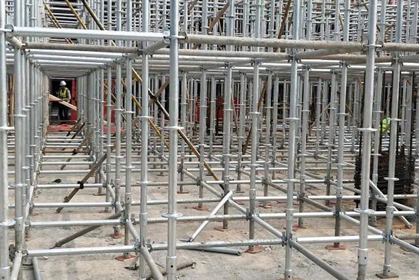 盘扣式脚手架的构件均为标准化、定型化产品,拆装方便,搭建速度快。工人只需一把小锤子,便可快速完成搭建,节省了工时和人工成本。